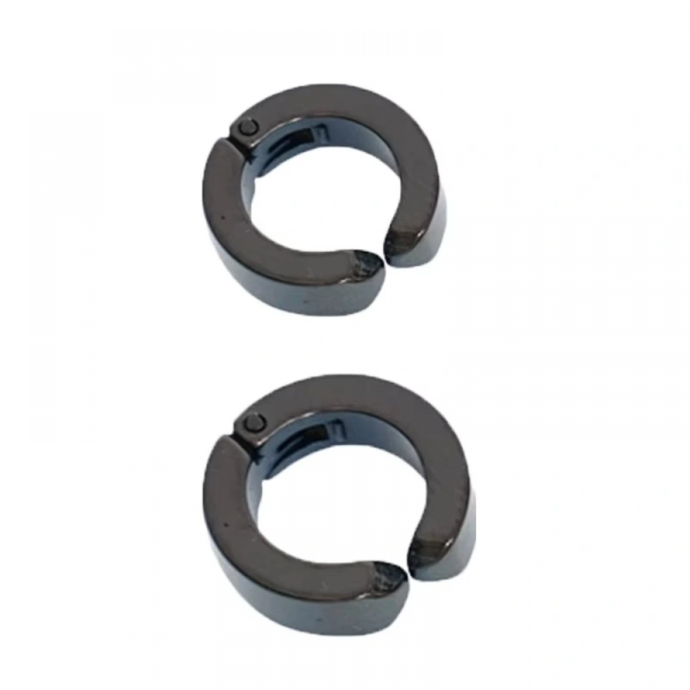Erkek Küpesi - 2 Adet Siyah Çelik Kıstırmalı Küpe Paslanmaz Atmaz Çelik Siyah Küpe