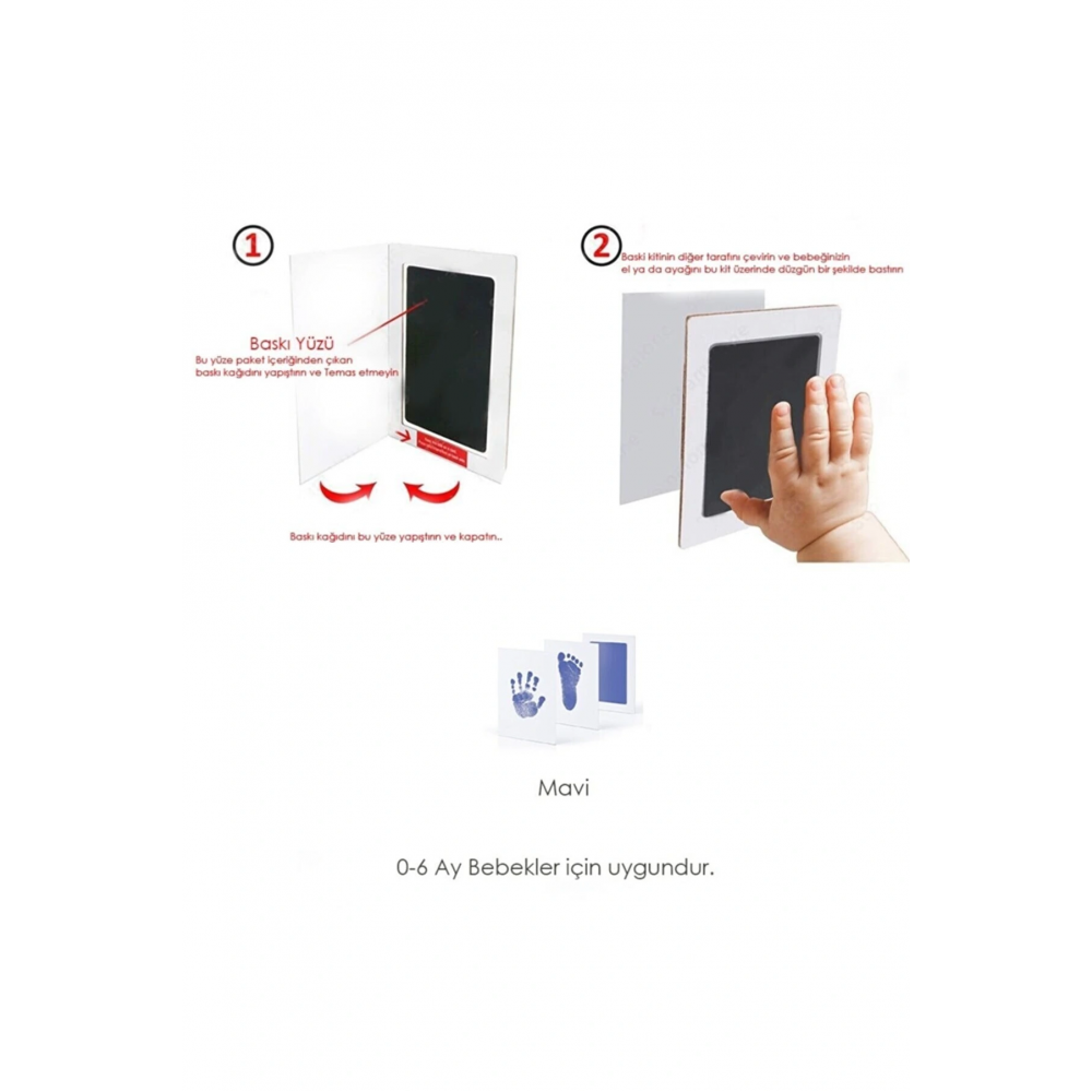 Bebek El ve Ayak İzi Fotoğraf içerisinde bebeğinizin el ve ayak izini alabileceğiniz Mürekkepsiz Baskı Kiti ile birlikte gelmektedir