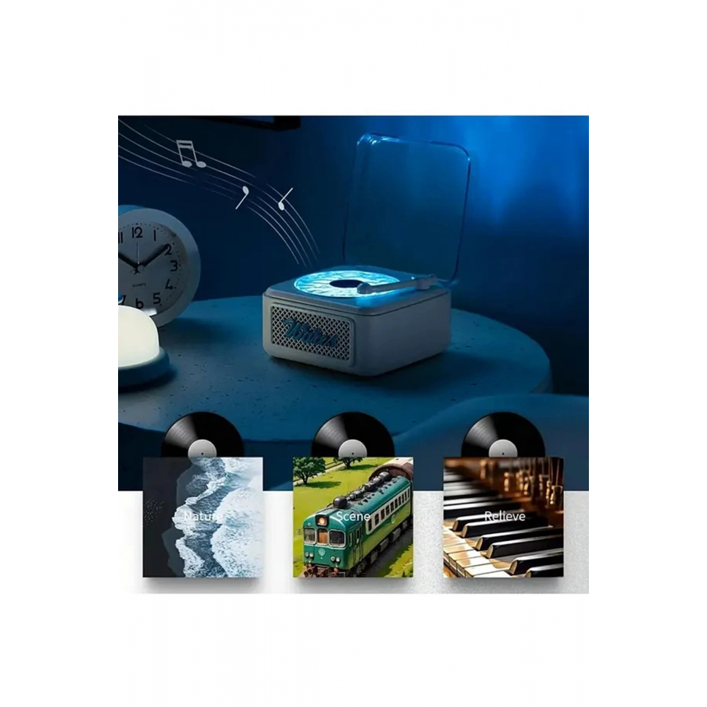 Retro Pikap Hoparlör Şarjlı Kablosuz Projektör Gece Lambası,