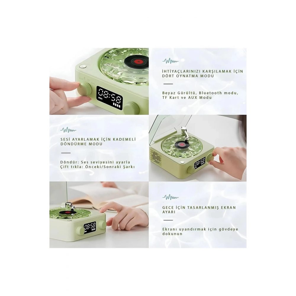 Waves Nostalji Plak Görünümlü Bluetooth Hoparlör 3d Ses Dalgası Retro Müzik Plak Yeşil