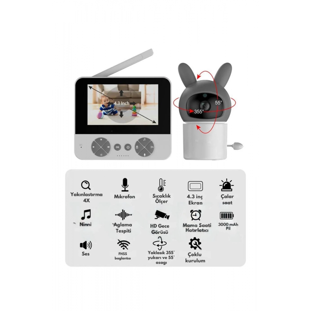 Kumandalı ve Monitörlü: Kamera, ebeveynlerin uzaktan kontrol edebileceÄŸi bir kumanda veya monitör ile birlikte gelir. Bu sayede kamera açısını deÄŸiÅŸtirebilir ve bebeÄŸin farklı açılardan izlenmesini saÄŸlayabilirsiniz.