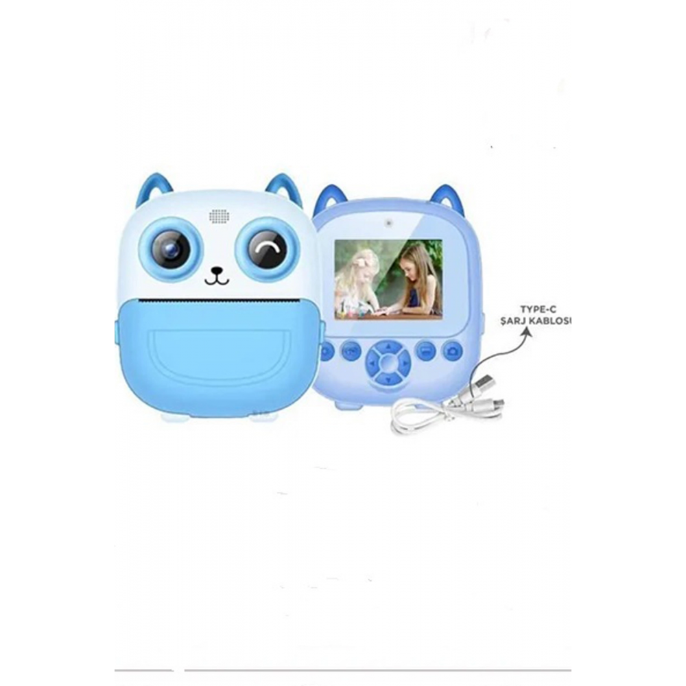 Dijital Video Fotoğraf App Destekli Çocuk Kamerası Termal Resim Kağıt Baskılı Yazıcı Mavi