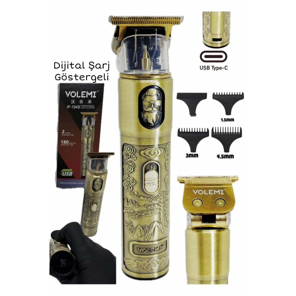 - VOLEMI IP-1949 Profesyonel Şarjlı Tıraş Makinesi | Dijital Ekranlı | USB Type-C | Sakal Saç Kesme Makinesi Kişisel bakım aletleri arasında en çok tercih edilen VOLEMI IP-1949 profesyonel tıraş makinesi, güçlü motoru, keskin bıçakları ve şık tasarımıyla tıraş makinesi kategorisinde öne çıkıyor.