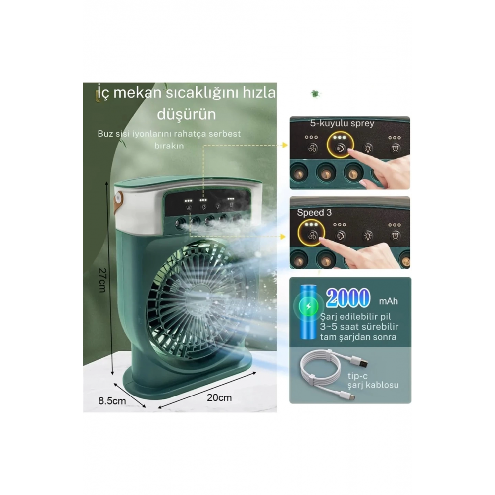 Şarjlı 600 Ml Su Hazneli Taşınabilir Masaüstü Vanilatör Güçlü Fan Ve 2000 Mah Pil Siyah