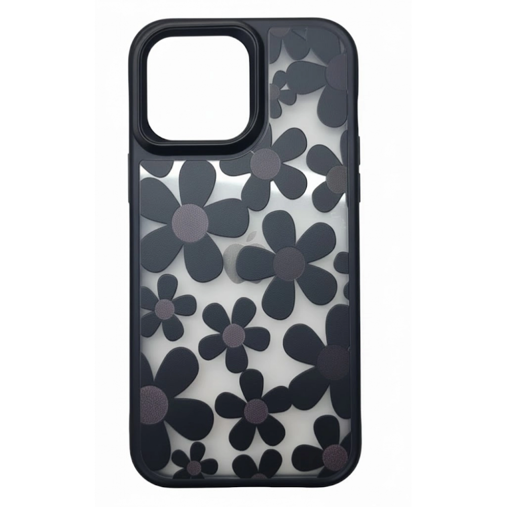 iPhone 16 Pro Max Çiçekli Kılıf Bağlama Aparatlı Siyah