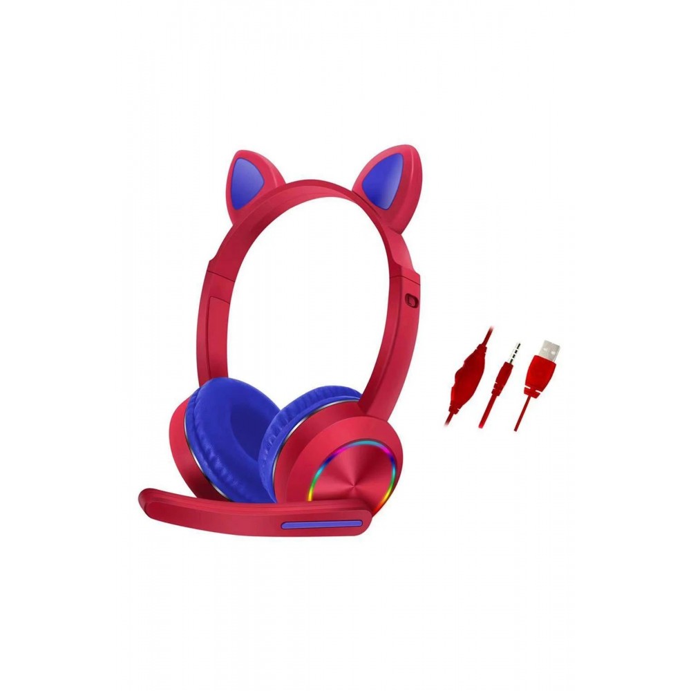 LRZ02 AKZ020 Kafa Üstü Işıklı Kedi Kulaklık - Kırmızı 8683140102166