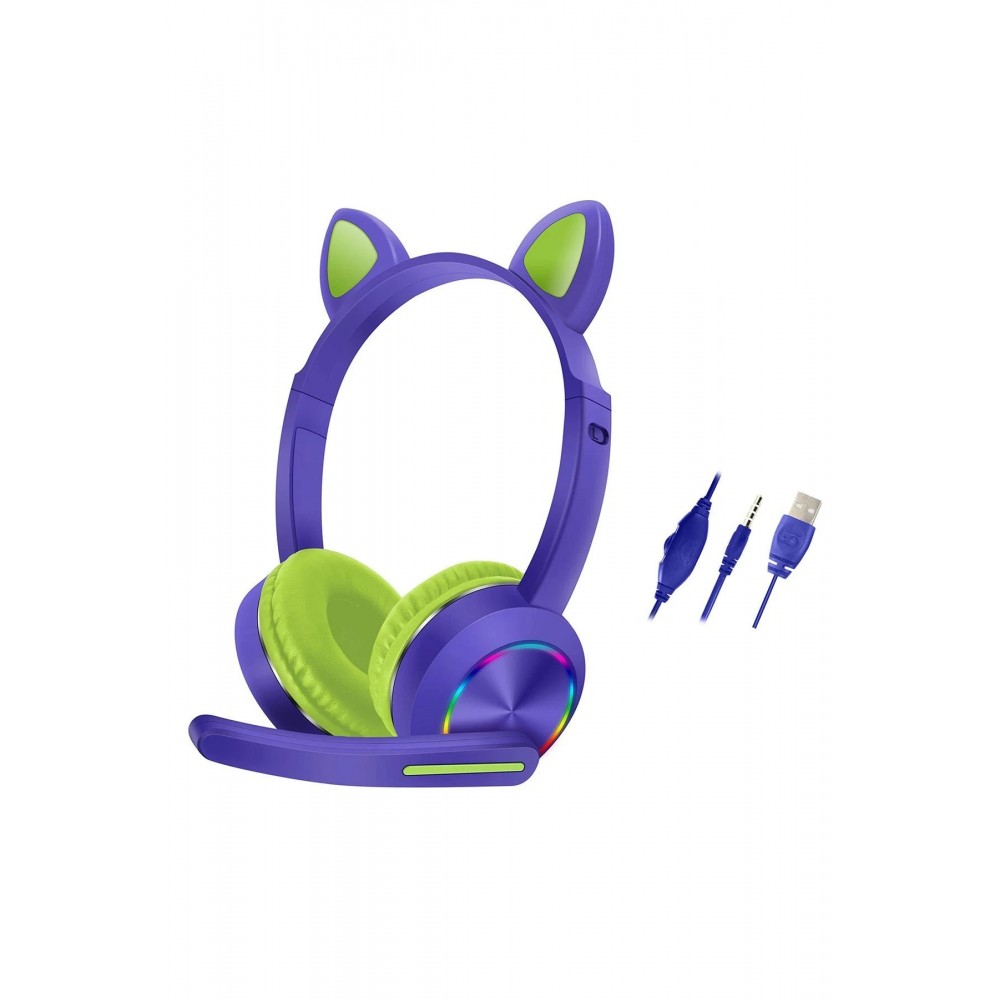 LRZ02 AKZ020 Kafa Üstü Işıklı Kedi Kulaklık - Mor…