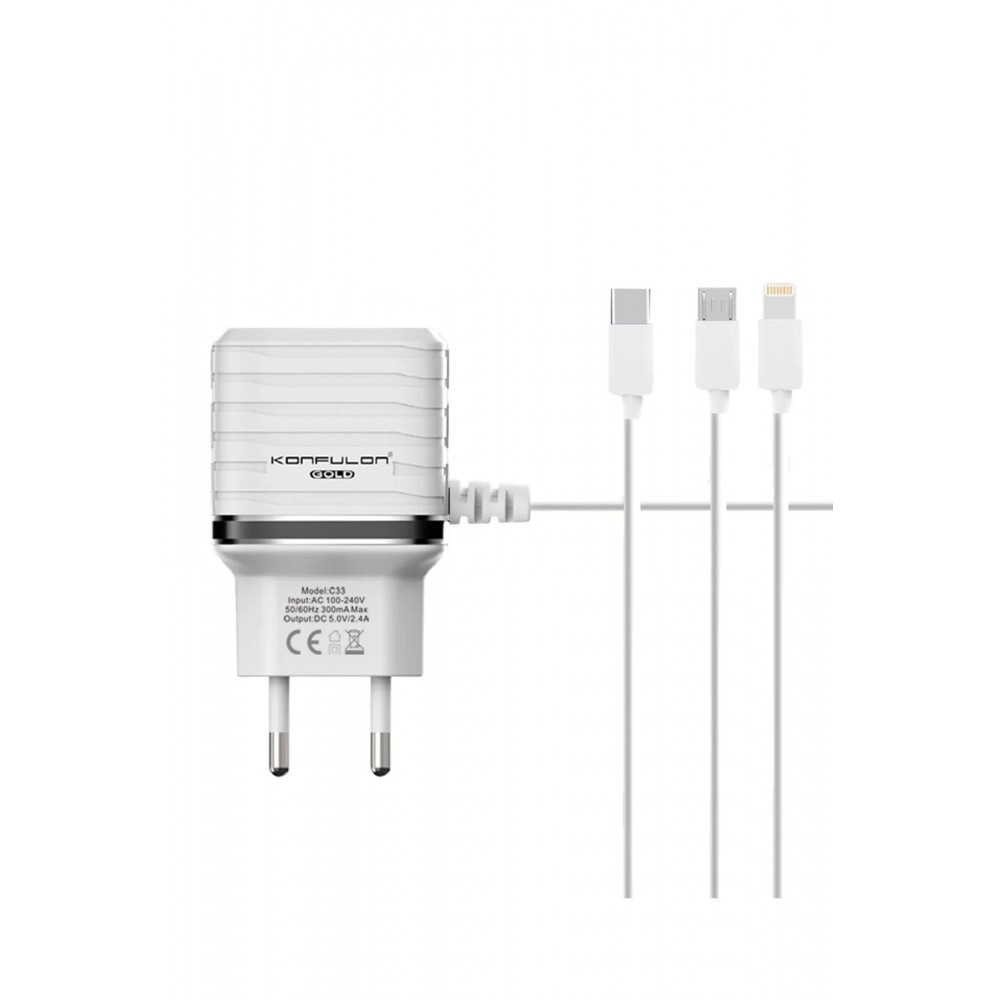 C33 Şarj Aleti, dahili Micro USB kablosu ile birlikte gelmektedir. Ayrıca iki adet USB çıkışı ile Li..