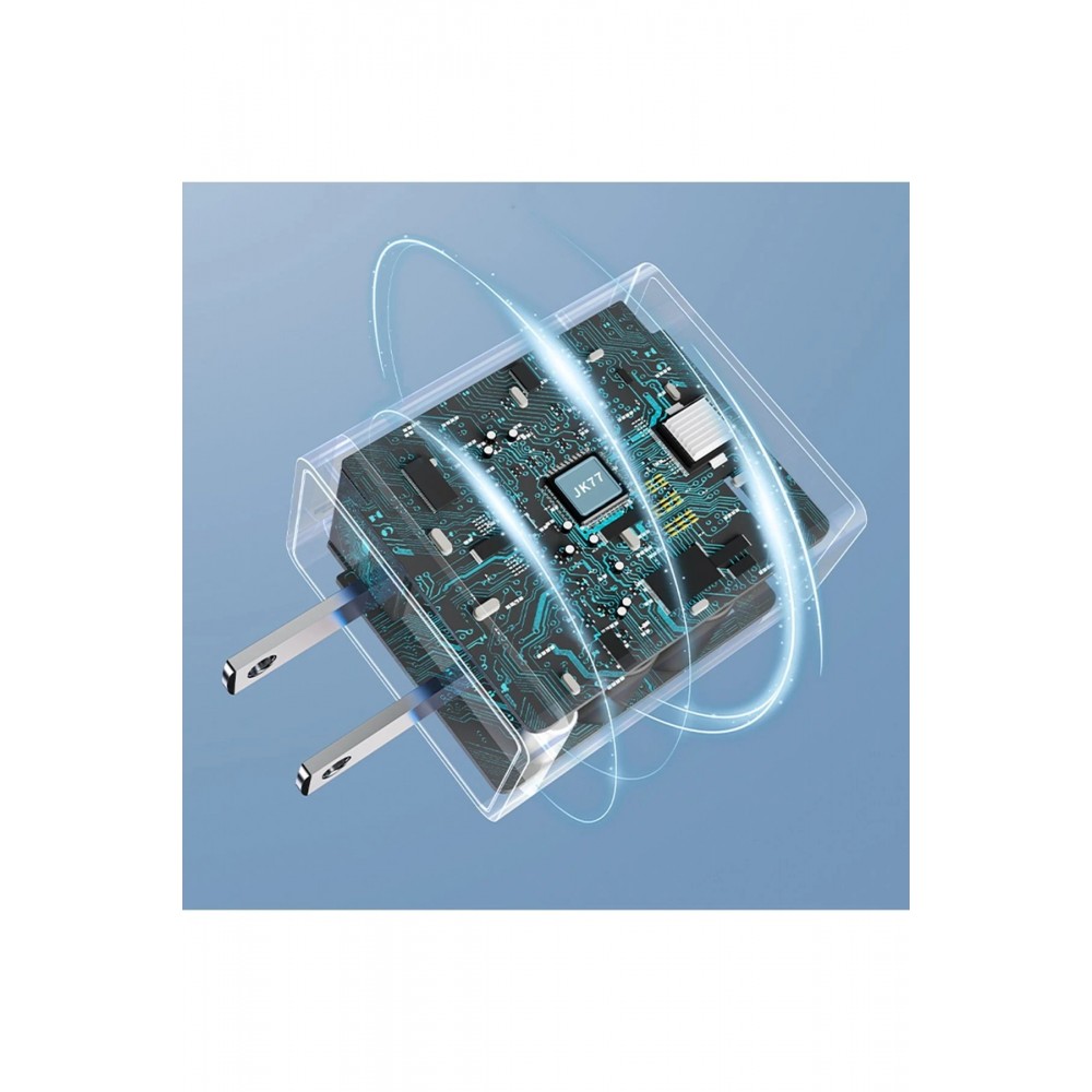 JK77 PD şarj cihazı, hızlı ve güvenli şarj imkanı sunarken, PX17 USB to Lightning kablosu ile tam bir set halinde kullanıcılara hem şarj hem de veri aktarımı konusunda pratik bir çözüm sunar.