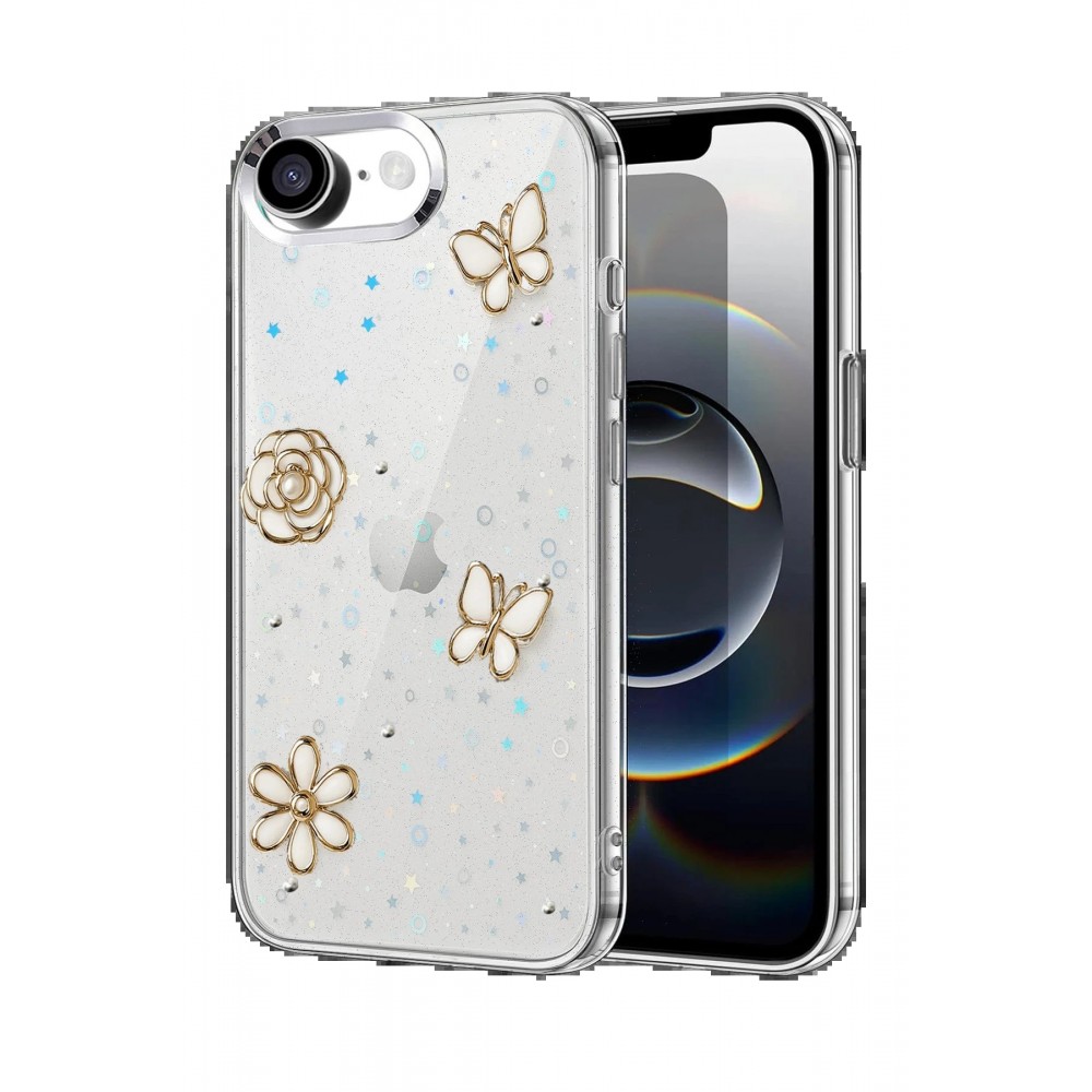 Fiyonk, yıldız, kelebek, lale, çiçek, kalp ve gül gibi zarif detaylarla süslenmiş bu kapak; simli, şeffaf tasarımıyla estetik ve korumayı bir araya getiriyor. Telefonunuzu yalnızca dış etkenlerden korumakla kalmaz, aynı zamanda ona göz alıcı bir stil kazandırır. Günlük kullanımda dikkat çeken tasarımı sayesinde cihazınızın şıklığı öne çıkar.