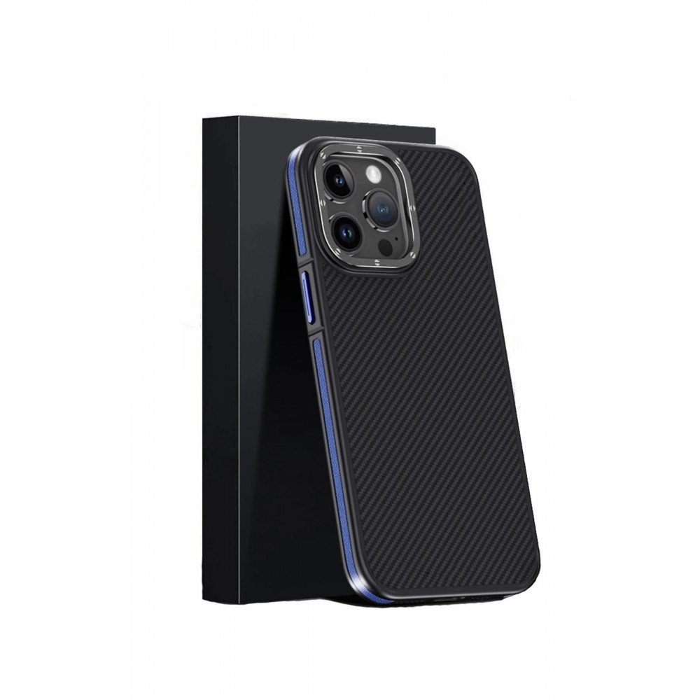 LRZ02 iPhone 15 Pro Kılıf Aramid 600D Kevlar Karbon Fiber Magsafe Kapak - Lacivert 8683140650216