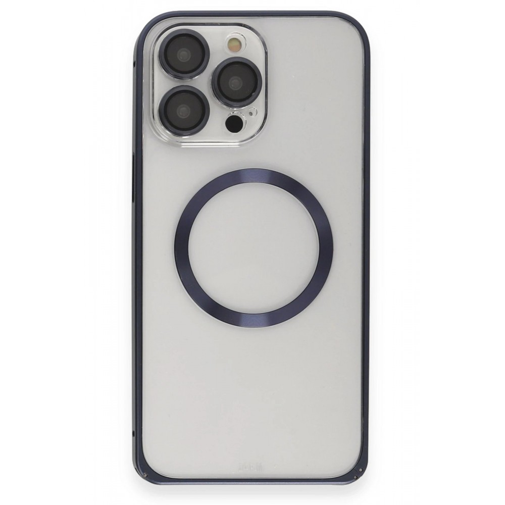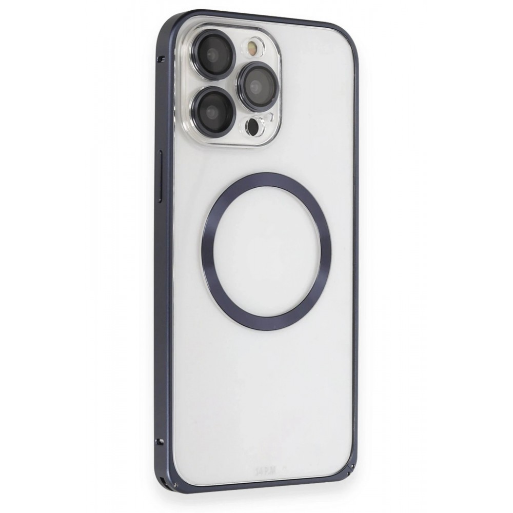 LRZ02 iPhone 15 Pro Kılıf Metal Bumper Magneticsafe Kapak - Lacivert 8683140653088