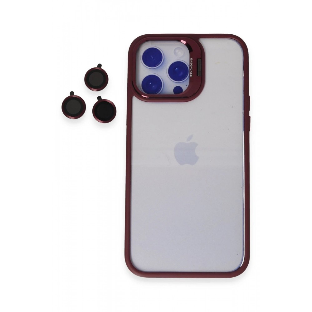 LRZ02 iPhone 15 Pro Kılıf Roblox Lens Standlı Kapak - Bordo 8683140631352