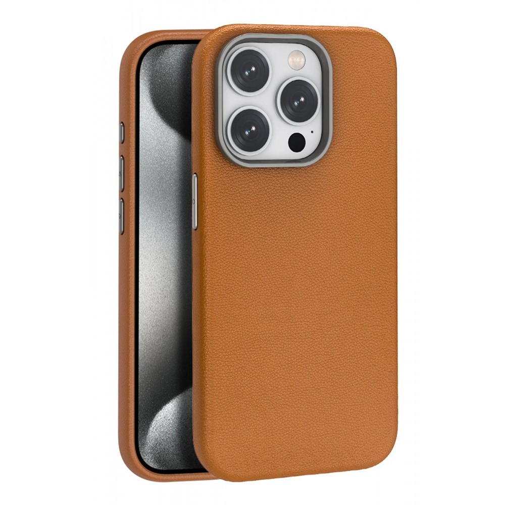 LRZ02 iPhone 15 Pro Kılıf Wonder Deri Magsafe Kapak - Kahverengi 8683140669942
