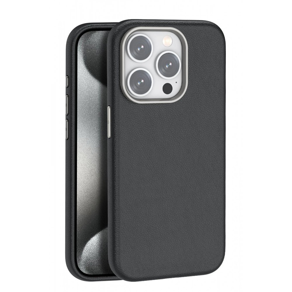 LRZ02 iPhone 15 Pro Kılıf Wonder Deri Magsafe Kapak - Siyah 8683140669911