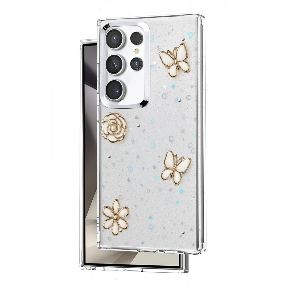 Fiyonk, yıldız, kelebek, lale, çiçek, kalp ve gül gibi zarif detaylarla süslenmiş bu kapak; simli, şeffaf tasarımıyla estetik ve korumayı bir araya getiriyor. Telefonunuzu yalnızca dış etkenlerden korumakla kalmaz, aynı zamanda ona göz alıcı bir stil kazandırır. Günlük kullanımda dikkat çeken tasarımı sayesinde cihazınızın şıklığı öne çıkar.