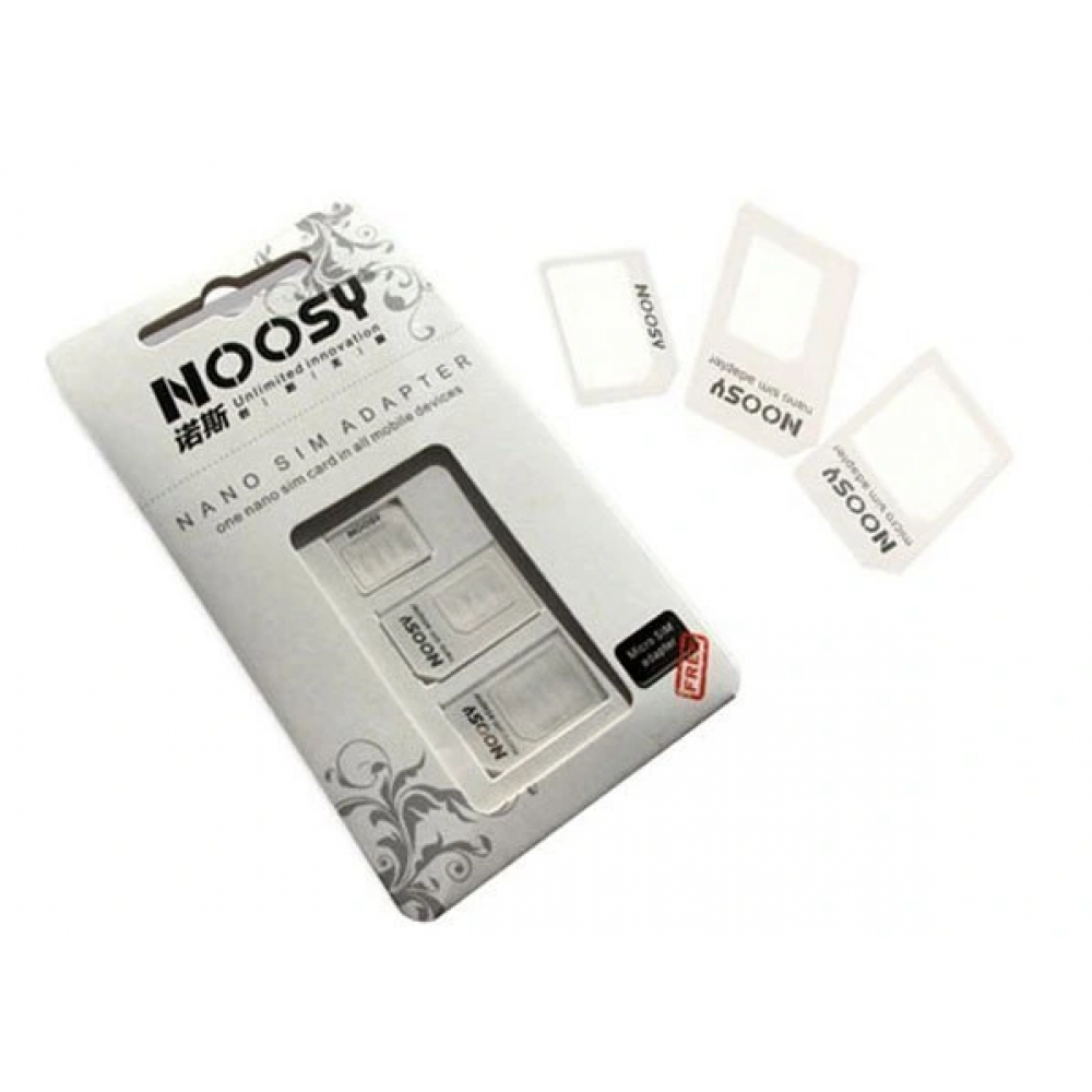 Noosy Sim Kart Adaptörü ile nano kartınızı micro ya da normal sim kart boyutuna getireceksiniz.