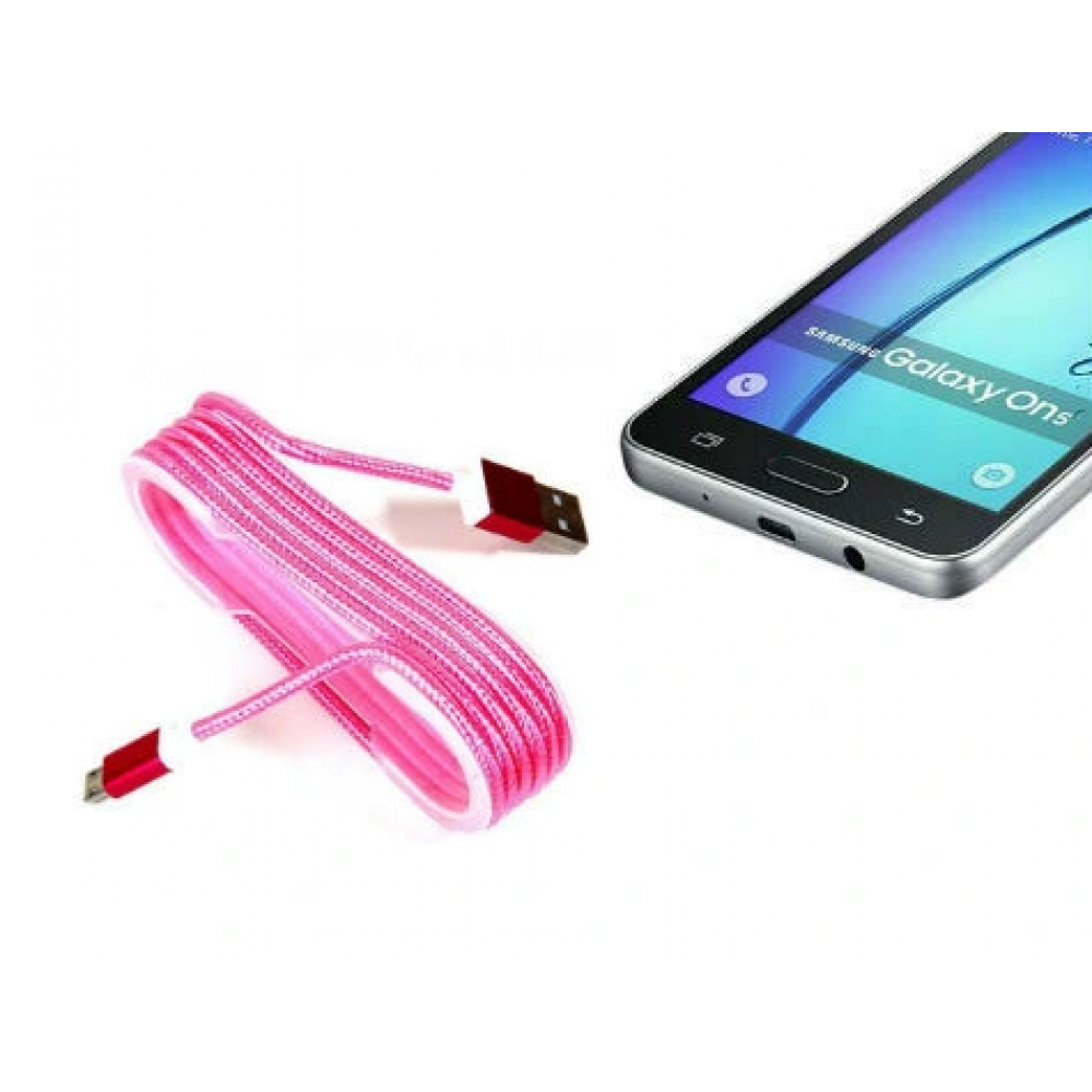 1 Adet Android Örgü Şeklinde Renkli Çelik Şarj Data Kablosu - Pembe