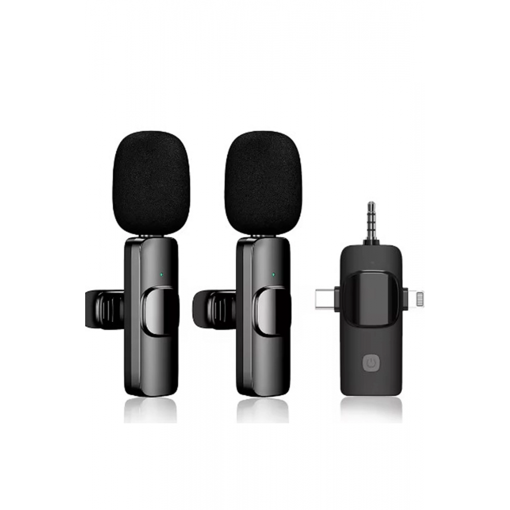 Yüksek Kalite Profesyonel 3 In 1 Kablosuz Taşınabilir Yaka Mikrofonu Youtube Facebook Tiktok