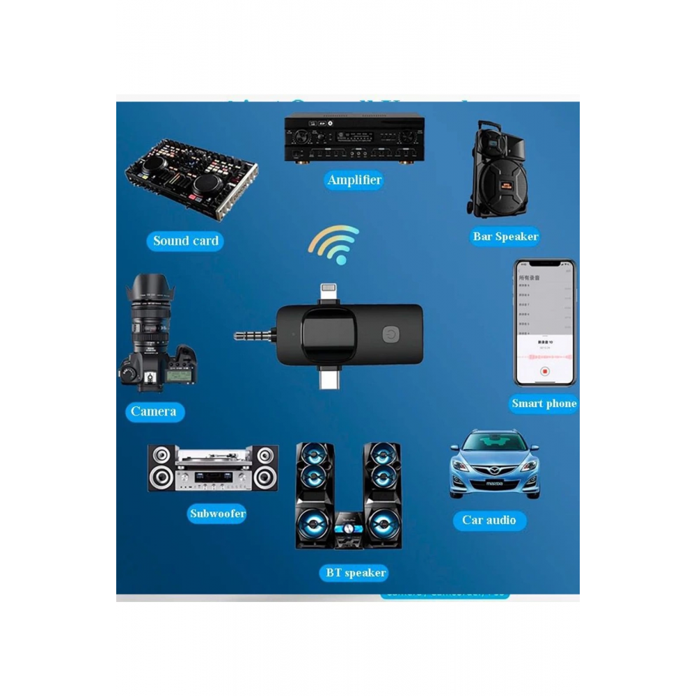 Mikrofon verici TypeC analog sinyal kulaklık gerçek zamanlı dinleme destekler.