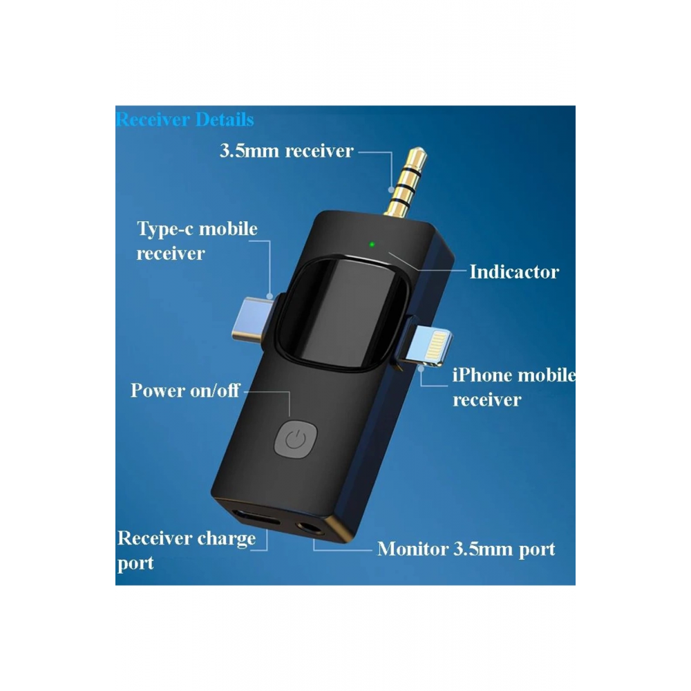 Mikrofon alıcısı 3.5mm kulaklık gerçek zamanlı dinlemeyi destekler.
