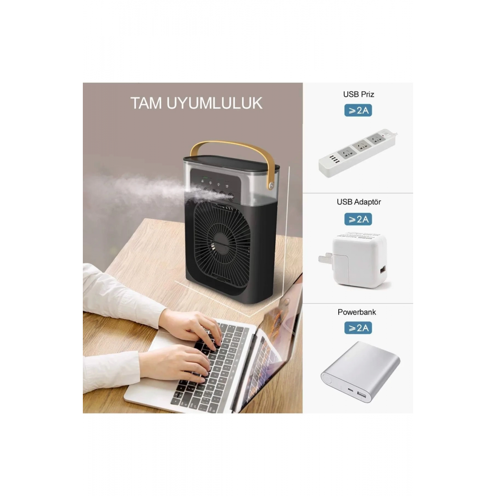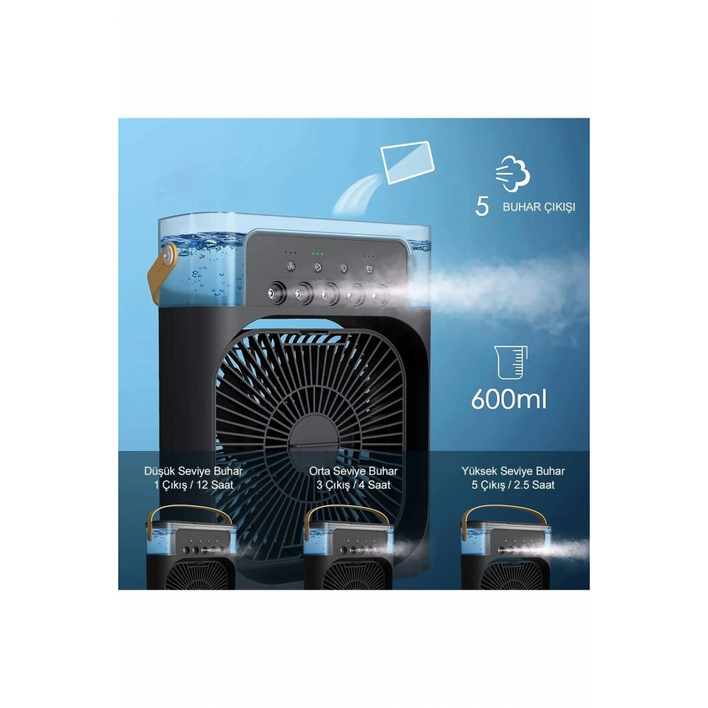 Taşınabilir Işıklı 5 Spreyli Vantilatör Buzlu Buharlı Vantilatör Mini Fan Nemlendirici