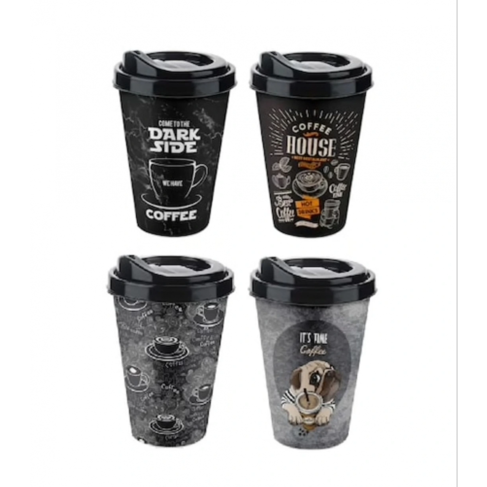 1 Adet Kahve Bardağı - Kapaklı Desenli 650ML