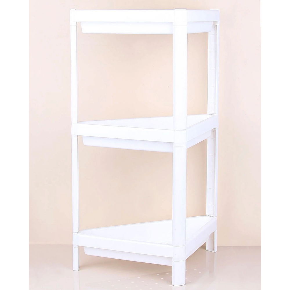 1 Adet Üçgen Üçgen 3 Katlı Raf Ünitesi - Mutfak - Banyo Depolama Rafı - Beyaz