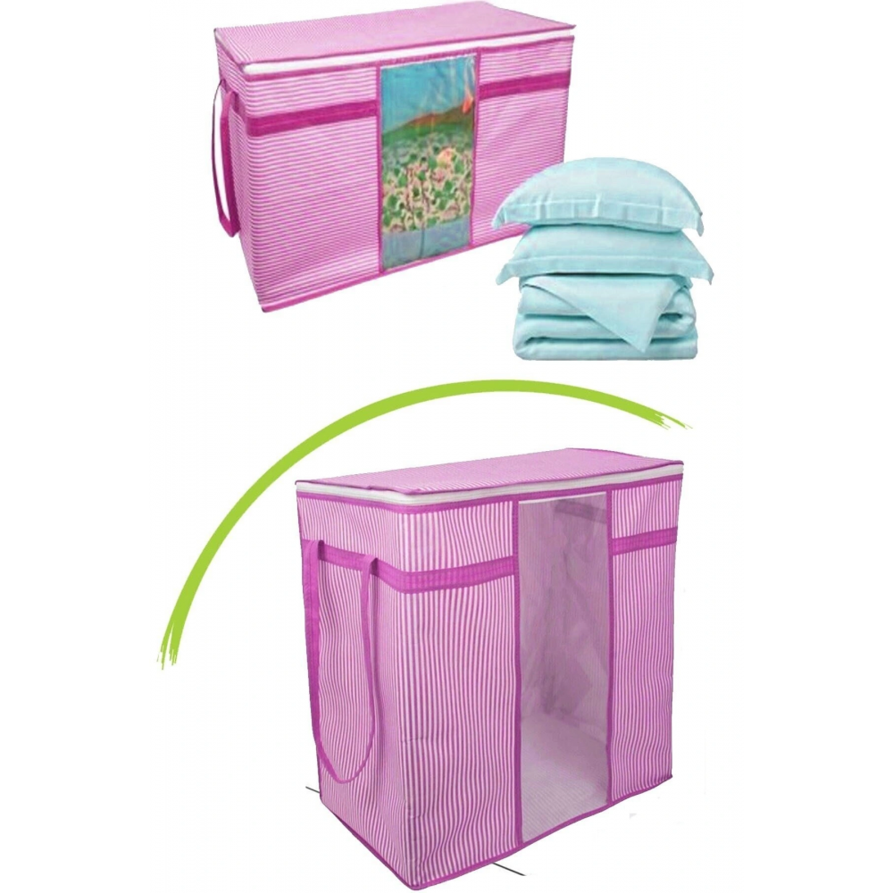 Pencereli Saklama Hurcu - Pembe Beyaz Çizgili
