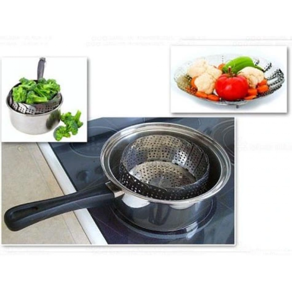 Sebze haşlama sepetine sebzeleri koyun ve tencereye yerleştirin, delikleri sayesinde sebzeleriniz buharda sağlıklı ve mükemmel şekilde pişsin!