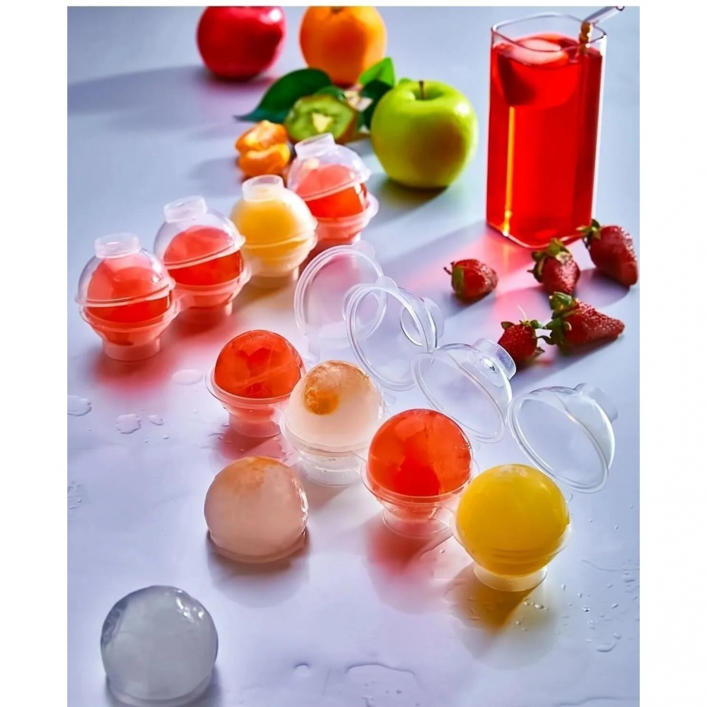 Üstten Doldurmalı Yatay 4 Bölmeli Küre Buz Topu Kalıbı - Yuvarlak Buz Topu Yapma Aparatı