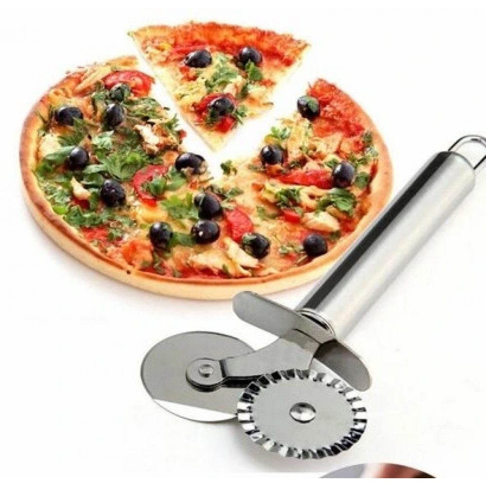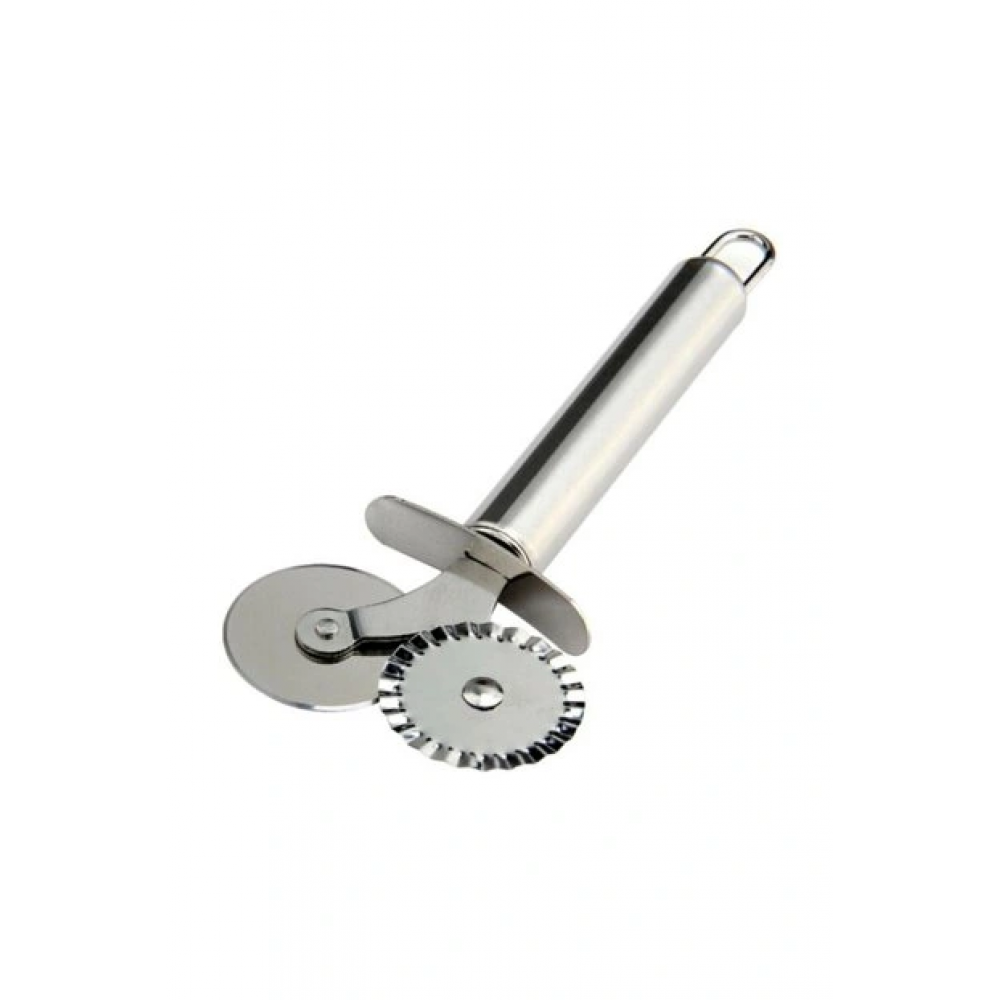 1 Adet Çİft Başlı Metal Pizza Kesici ve Hamur Ruleti