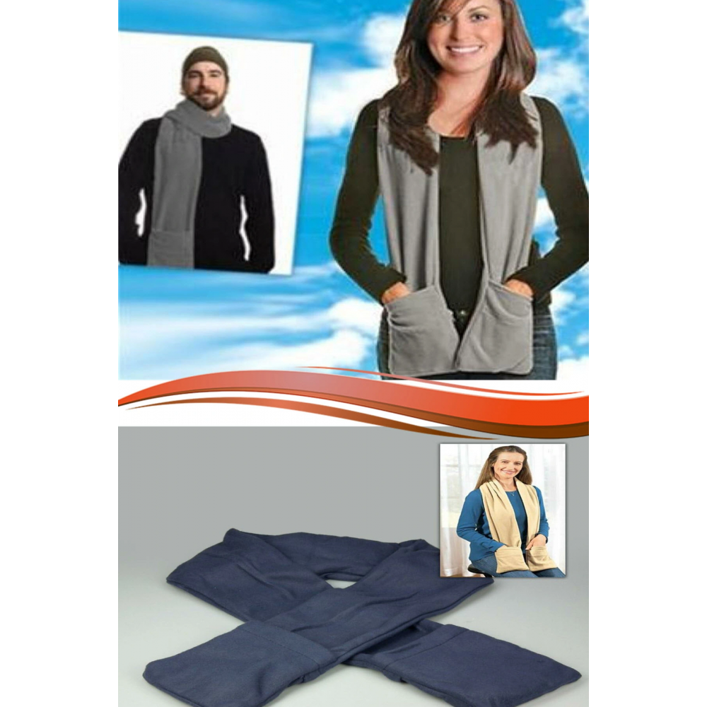 Soğuk günlerde sizi ısıtacak mükemmel bir ürün; Termal Cepli Atkı Thermal Fleece Scarf ile hem elleriniz hem boynunuz artık üşümeyecek