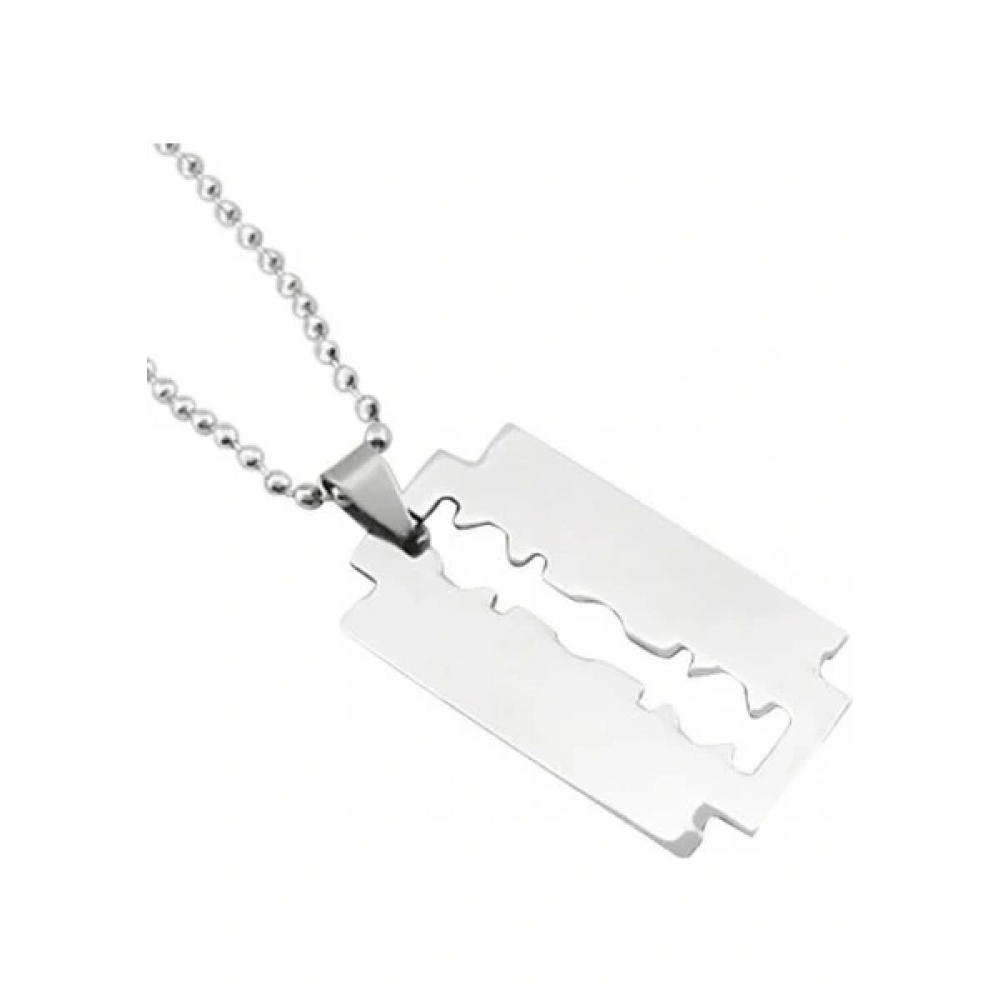 Jilet Çelik Kolye - Jilet Model Paslanmaz Gümüş Renk Çelik Kolye