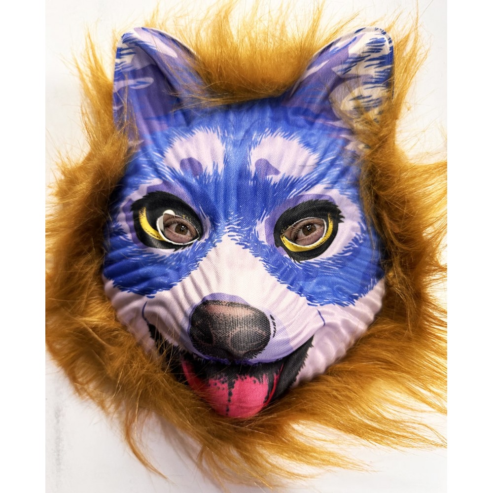 Kahverengi Yeleli Saçlı Mavi Yüzlü Kurt Kaplan Maskesi Mega Peluş 38 …