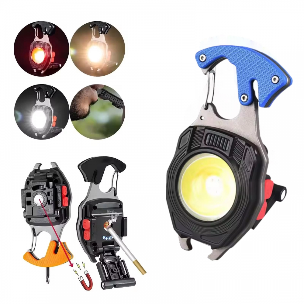 - Çok işlevli: Bu alüminyum alaşımlı anahtarlık el feneri, aydınlatma, şişe açacağı, çakmak, kesici, güçlü manyetizma, hayatta kalma düdüğü, kalem klipsi gibi birden çok işlevi birleştirir.