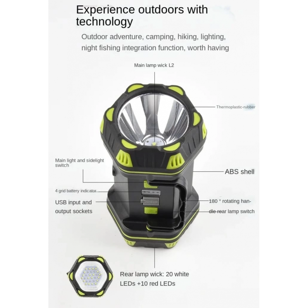 F-262 Yeni Güçlü Çift Taraflı Taşınabilir Spot Ve Işıldak Usb Powerbank Şarjlı Fener