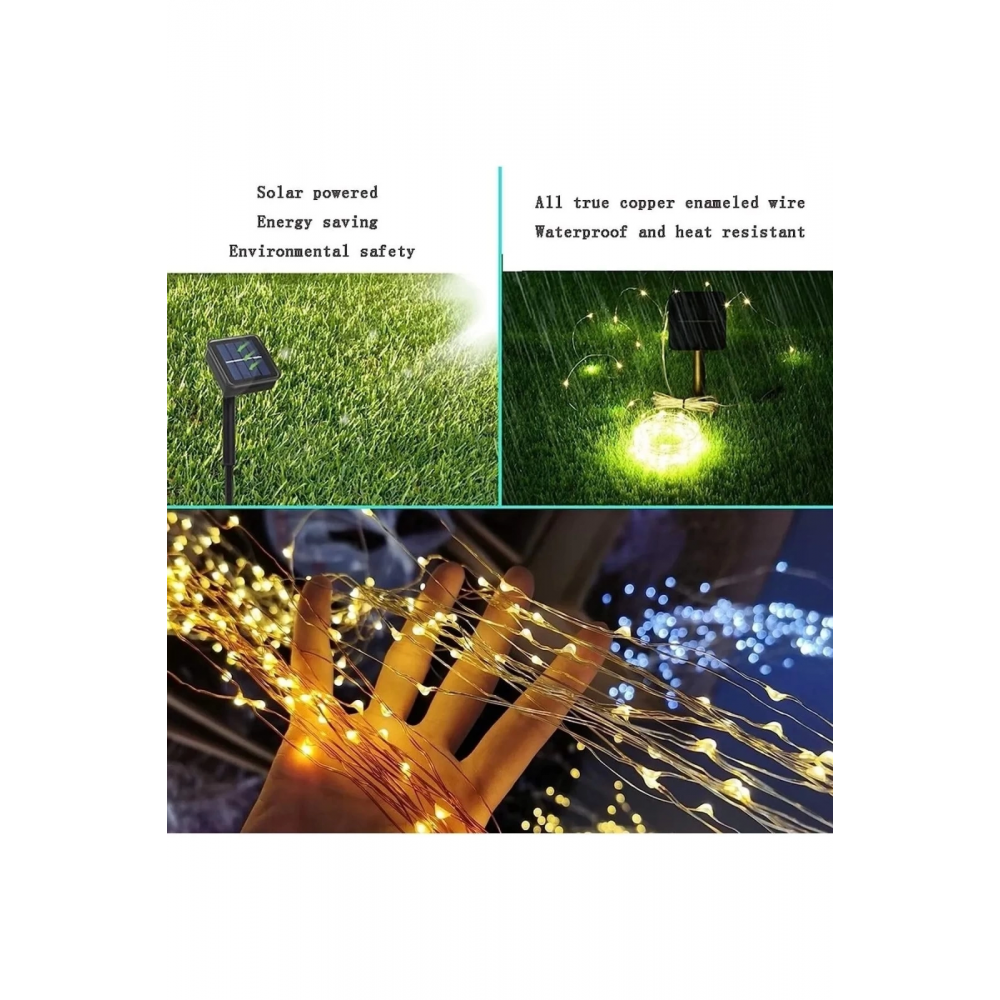Solar Güneş Enerjili Peri 200led 20 Metre Günışığı 8 mod 200 led
