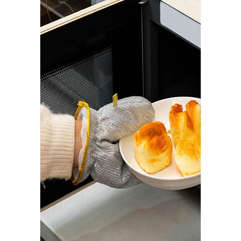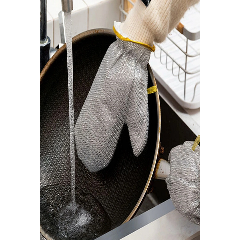 Yenilikçi tasarım: çelik tel eldiven, inatçı kir ve gıda kalıntılarını elinize zarar vermeden veya yıkama maddelerini etkili bir şekilde temizleyebilen yenilikçi çelik tel örgülü tasarımı benimsemektedir.