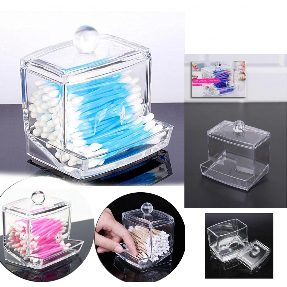 Şeffaf üstten kapaklı şık tasarım,Altta kulak temizleme çubuklarının alınma bölmesi vardır.