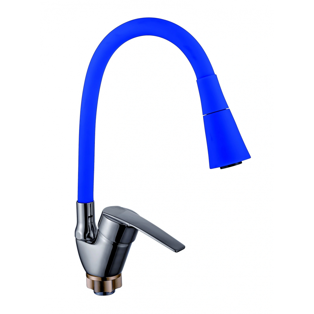 1 adet Oynar Başlıklı Çelik Spiral Üzeri Silikon Kaplama Musluk Başlığı Kobra Fonksiyonlu Musluk - Mavi
