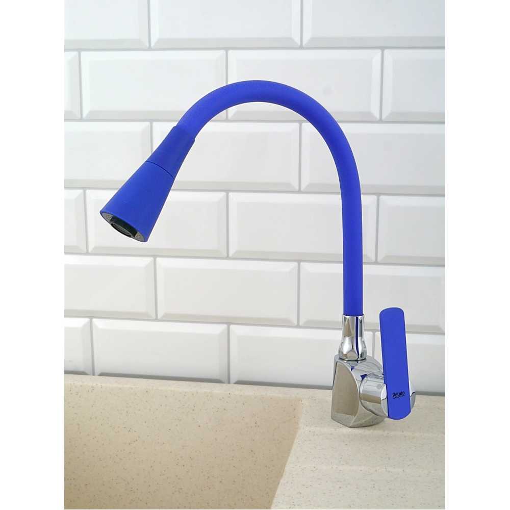 Oynar Başlıklı Çelik Spiral Üzeri Silikon Kaplama Musluk Başlığı Kobra Fonksiyonlu Musluk - Mavi
