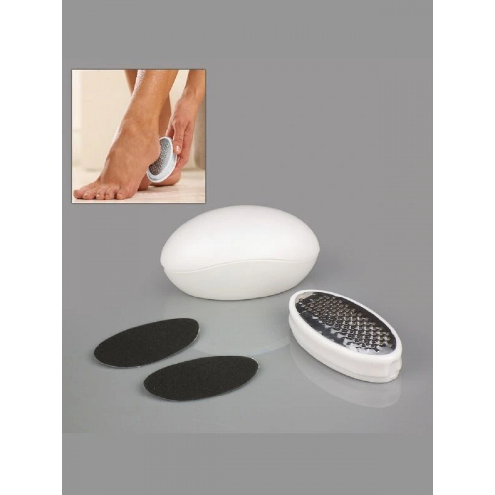 Paslanmaz çelikten ve 130 hassas mikro dokudan oluşmaktadır.Kurumuş ölü derileri can yakmadan sağlıklı deriye zarar vermeden temizler.Ölü derileri haznesinde biriktirir yerlere dökmez. Nasırları hızla temizler.