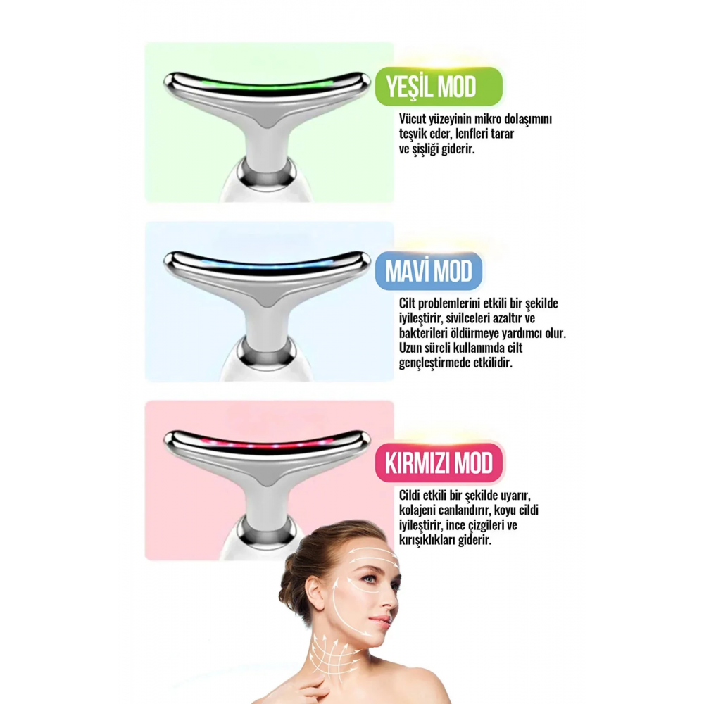3 Modlu EMS Güzellik Cihazı – Kırmızı, Yeşil ve Mavi Işık Terapisi | Titreşim & Sıcak Kompres Destekli