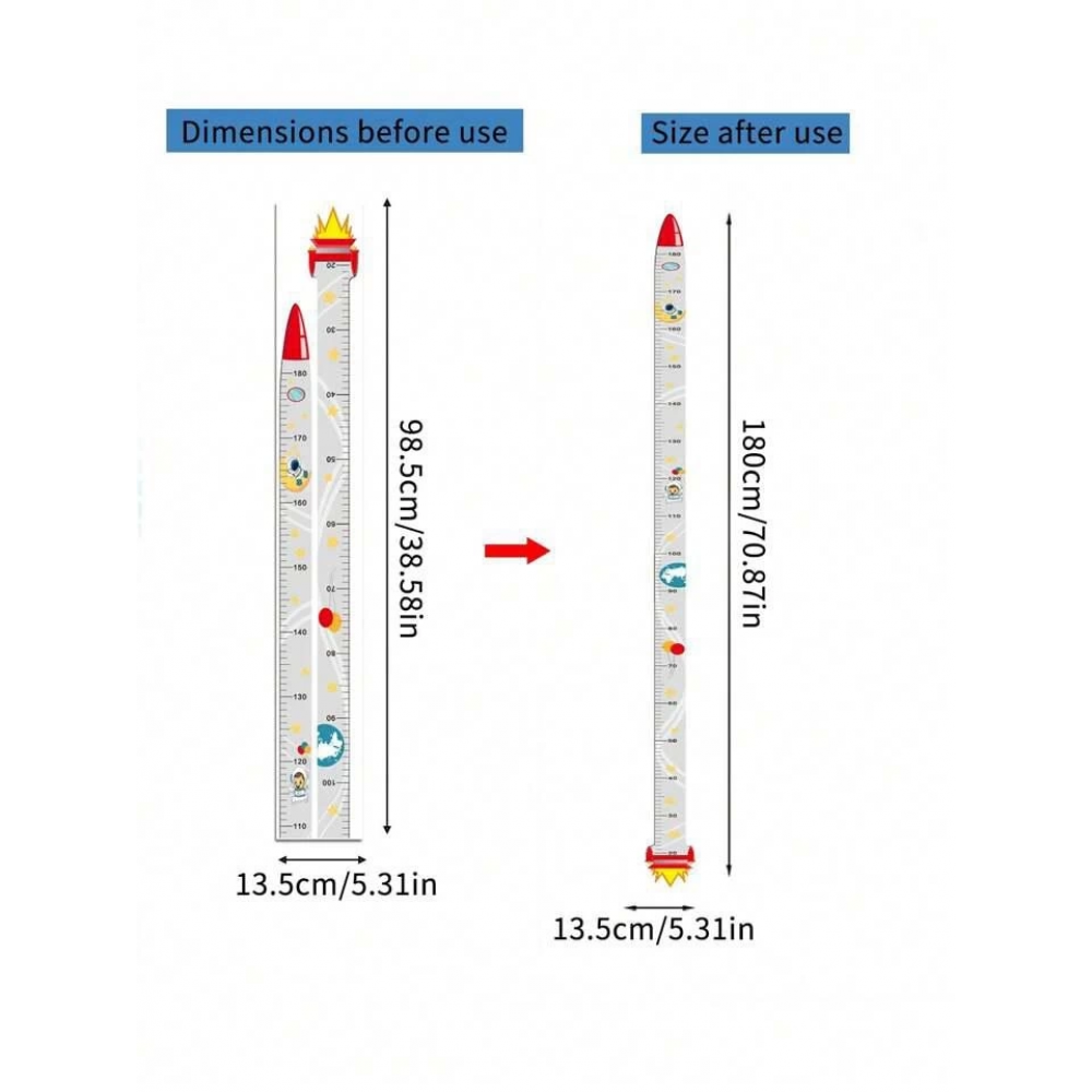 - Odasına yapıştırın düzenli olarak boyunu ölçün, mutlu olsun Arkasında bulunan çift taraflı bantlar sayesinde duvarınıza zarar vermeden kolayca yapıştırın.