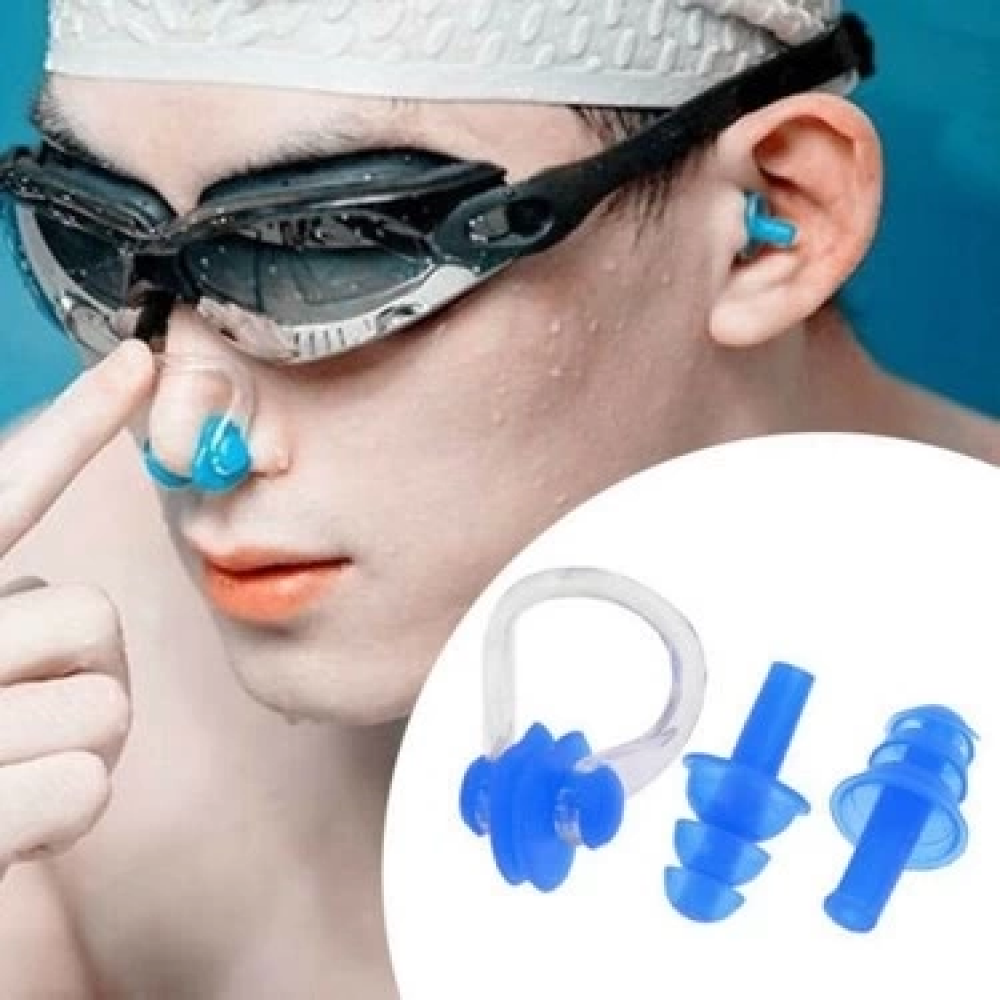 - Su geçirmez silikon yüzücü kulak tıkaçları burun klipsli seti ile  kulaklarınızı ve burnunuzu suya karşı korur.