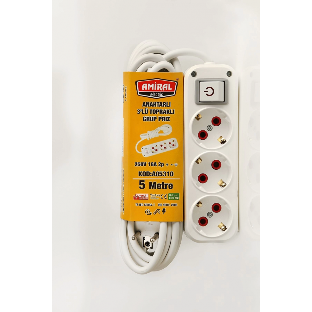 - AMİRAL 5 METRE ANAHTARLI 3'LÜ UZATMA KABLOSU