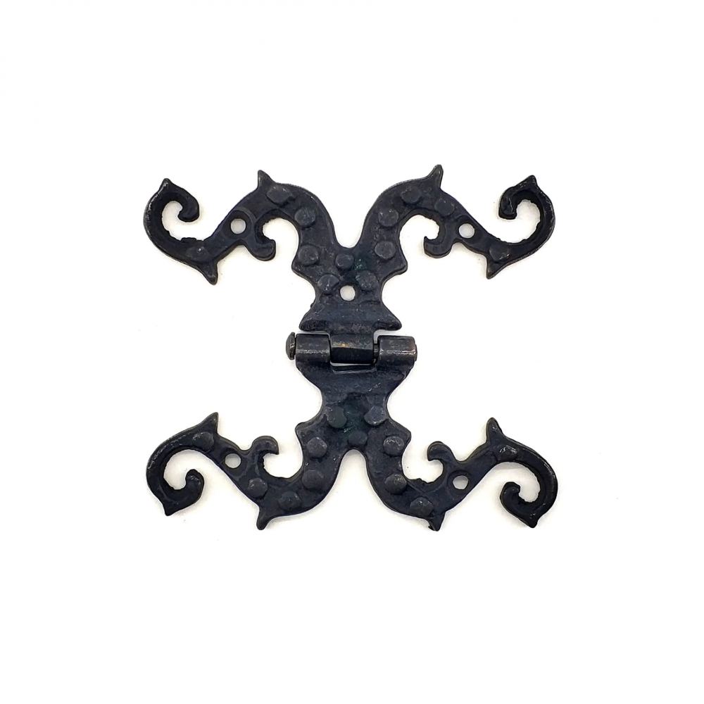 Antika Tarz Dekoratif Pirinç Süslü Menteşe - 100x90 mm, Oksit