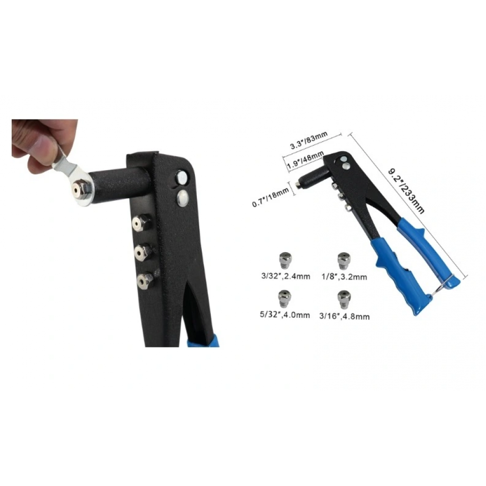 4 farklı perçin kalınlığı için değiştirilebilir uçlar