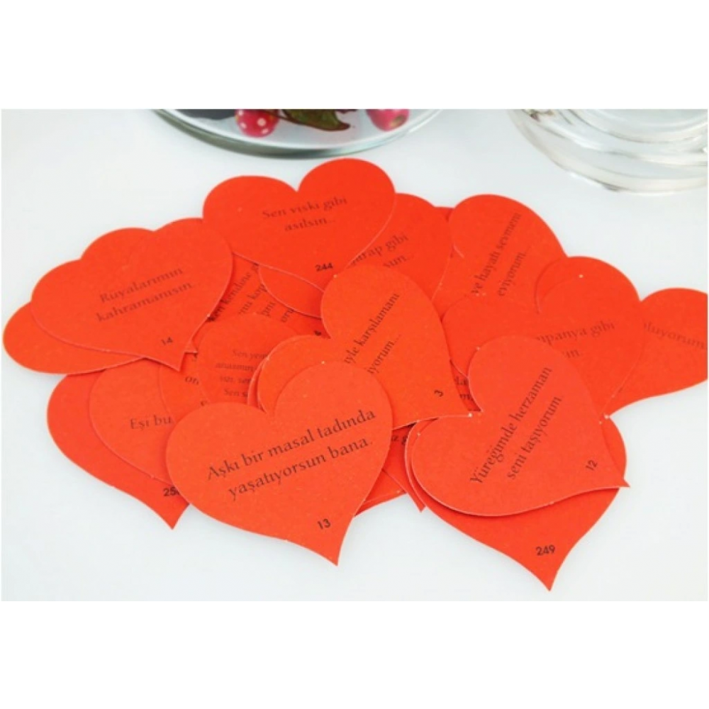 Seni Seviyorum Çünkü Bir Sürü Nedenim Var Sözleri, hislerinizin tercümanı olacak. Özel kırmızı kutusu içinde gönderilen tam 100 adet sevgi cümlesi sevgilinize onu neden ve ne kadar çok sevdiğinizi anlatacak.